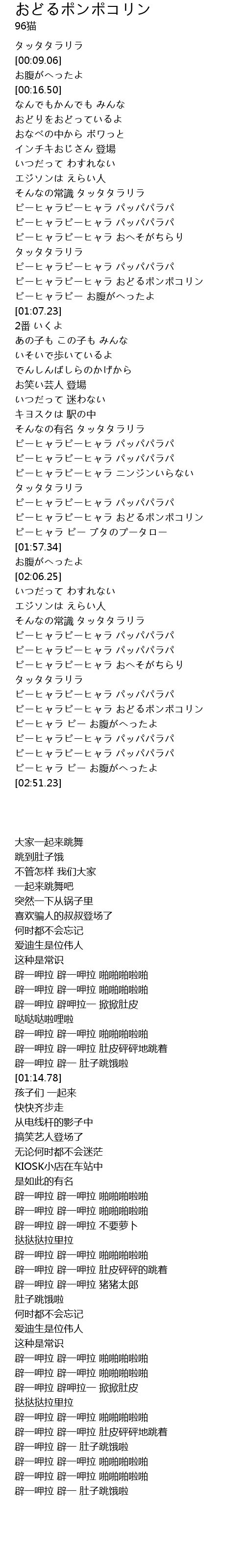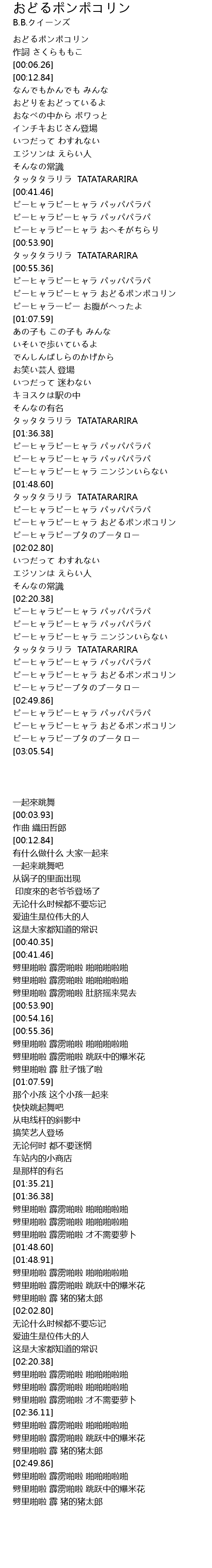 おどるポンポコリン 歌詞 By さくらももこ B B クイーンズ Mp3歌詞 雲家樂歌詞網